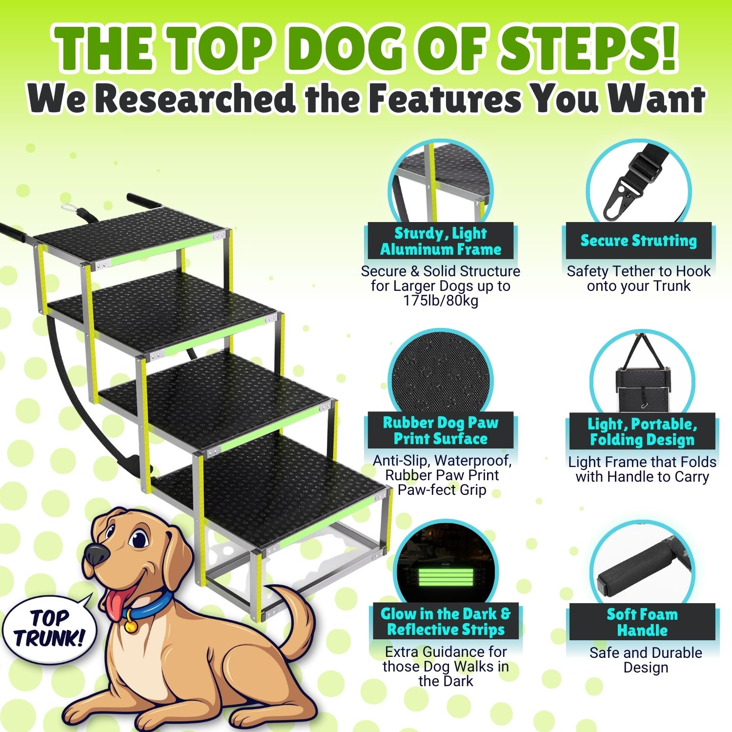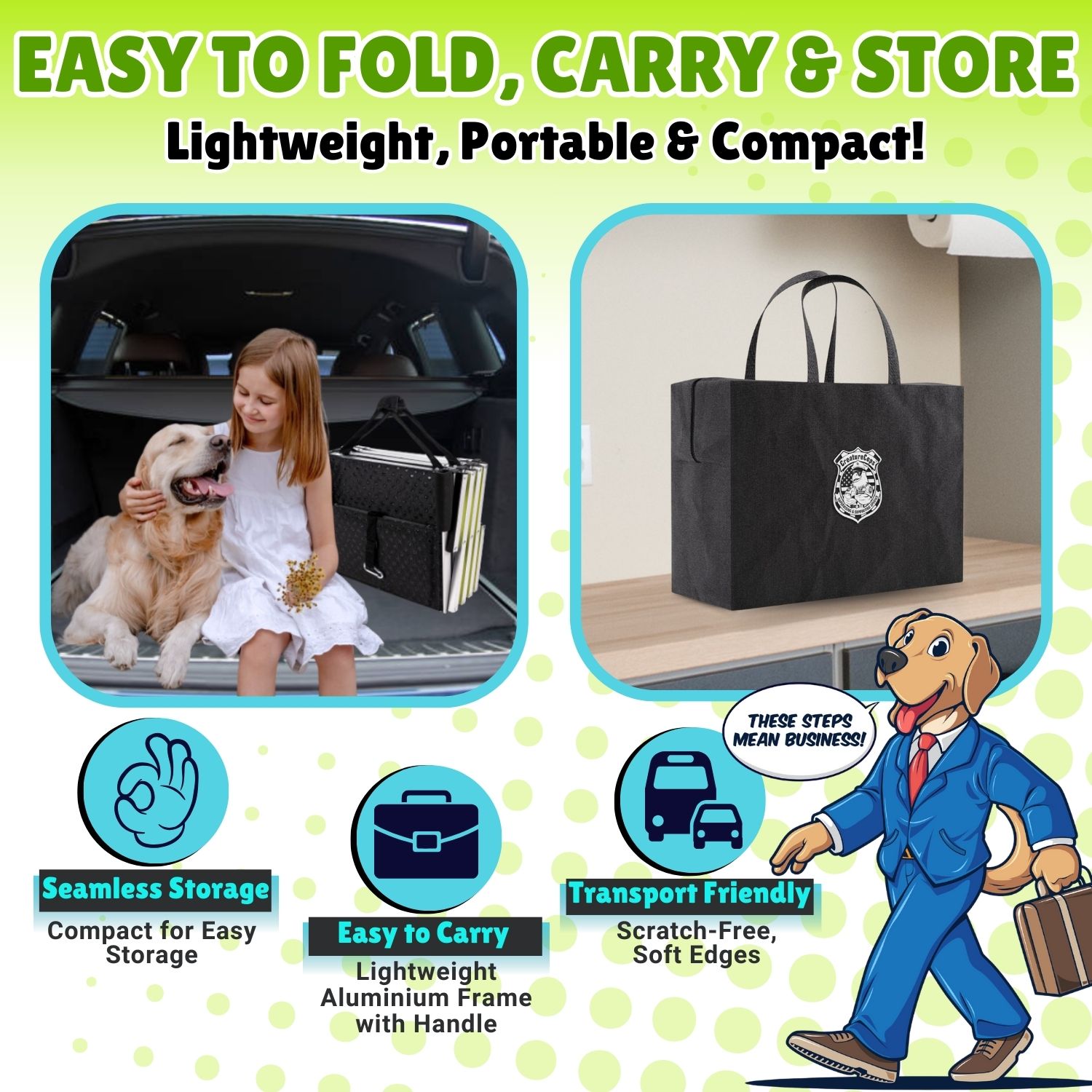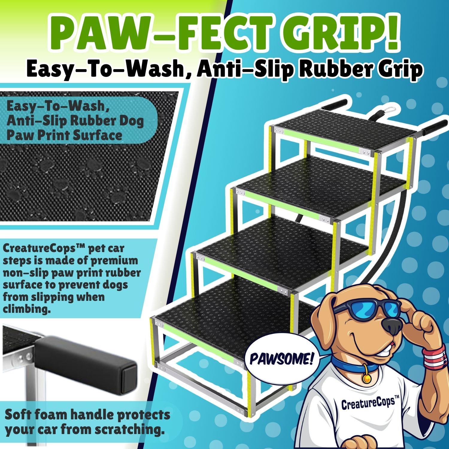 CreatureCops™ Dog Steps for Car | Glow in the Dark Dog Steps for Large Dogs, 200lb Support | Foldable Dog Stairs for Car & Home with Non-Slip Surface | Lightweight Aluminum + Carry Bag | 4 Steps